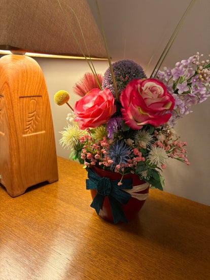 Chez Lesmainsflorales, chaque création est entièrement façonnée à la main, avec soin, patience et une grande attention aux détails. Contrairement aux arrangements standardisés que l’on trouve en grande surface ou en ligne : • Chaque composition est une pièce unique, pensée comme une œuvre d’art poétique, jamais reproduite à l’identique. • J’associe les fleurs artificielles de qualité à des matières naturelles, des symboles, des plumes, des textures qui racontent une histoire. • Mes créations sont chargées d’intention et d’émotion : elles ne décorent pas seulement, elles transmettent. • Je travaille souvent à l’écoute d’une saison, d’un message ou d’une sensation intérieure – ce qui donne à chaque pièce une âme singulière. • Je propose également un accompagnement personnalisé pour répondre à vos envies, vos cadeaux, vos hommages, vos moments de vie.